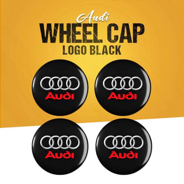 Audi Wheel Cap Logo Black Centre Hub Badge Sticker Set - 4 Pcs.