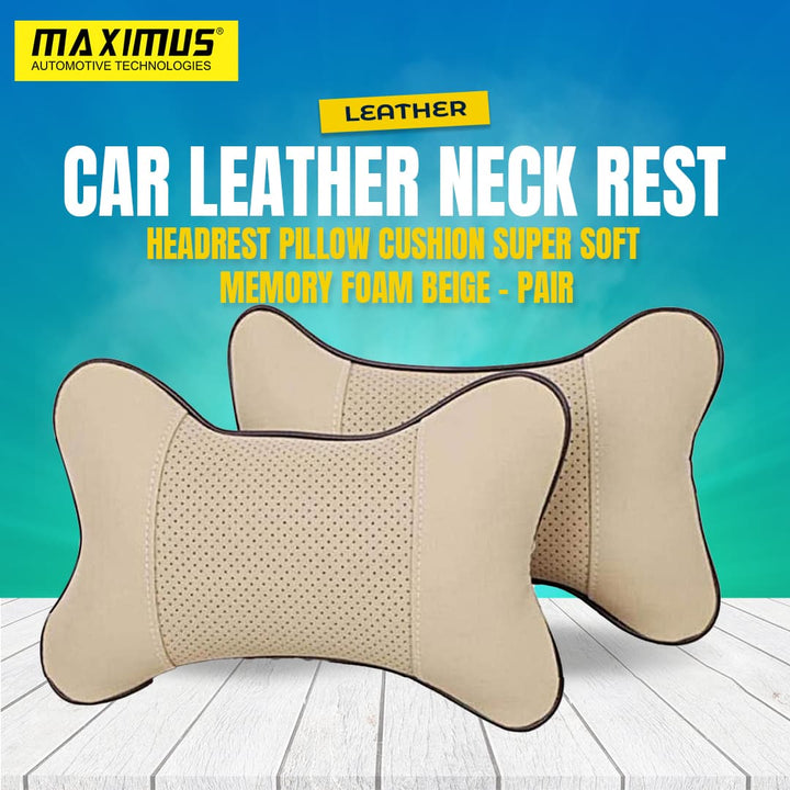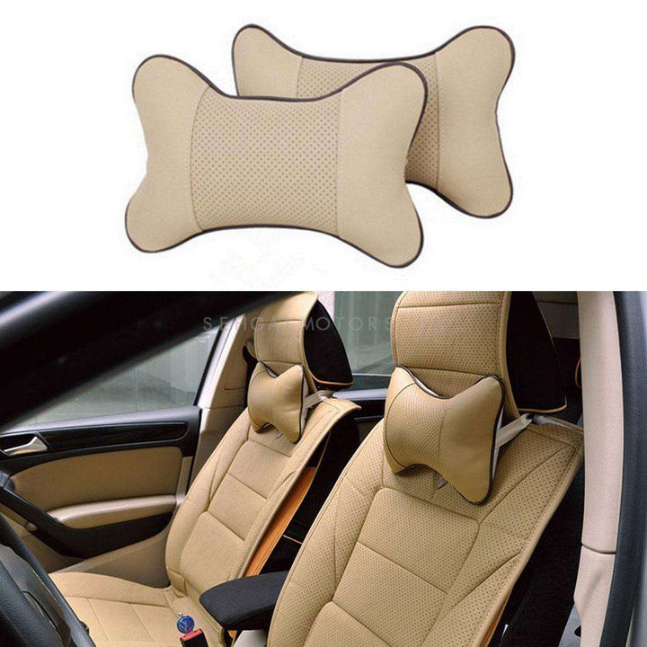 Car Leather Neck Rest Headrest Pillow Cushion Beige - Pair - - Super Soft Memory Foam