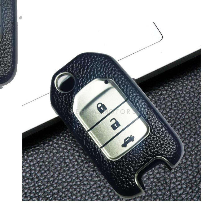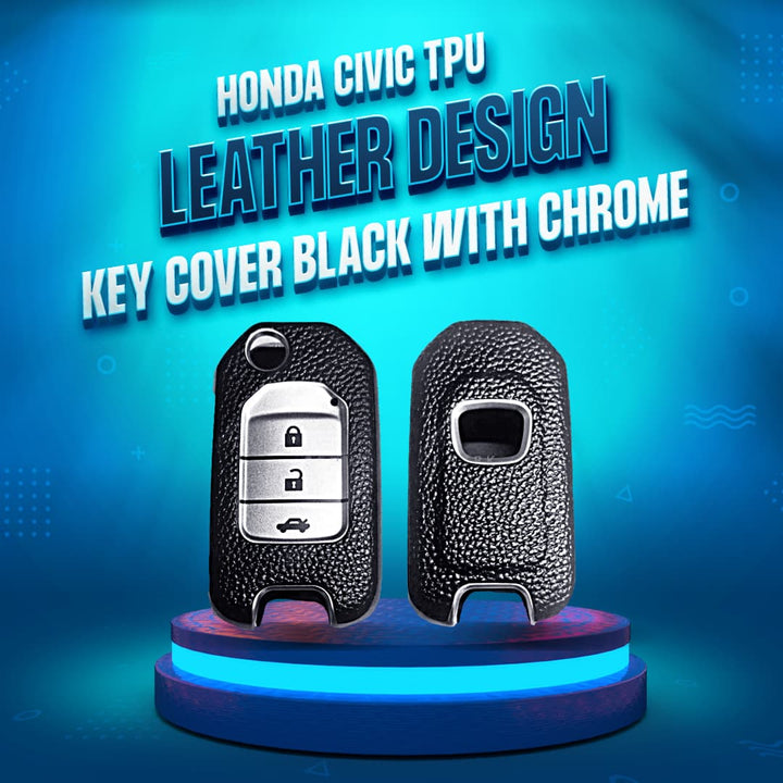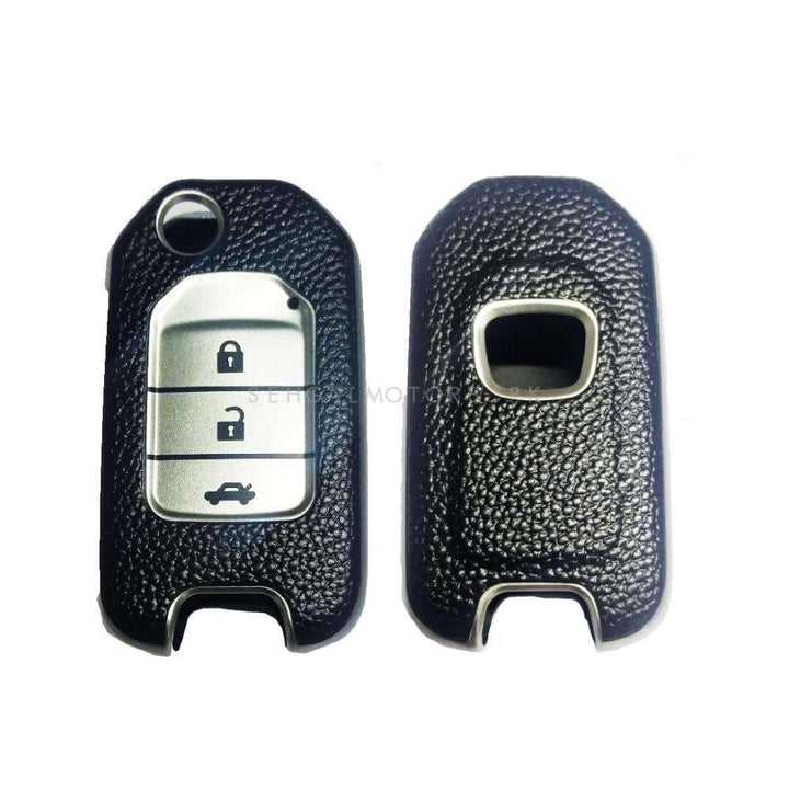 Honda Civic TPU Key Cover Design 3 Button 2014 - 2016 - Black With Chrome