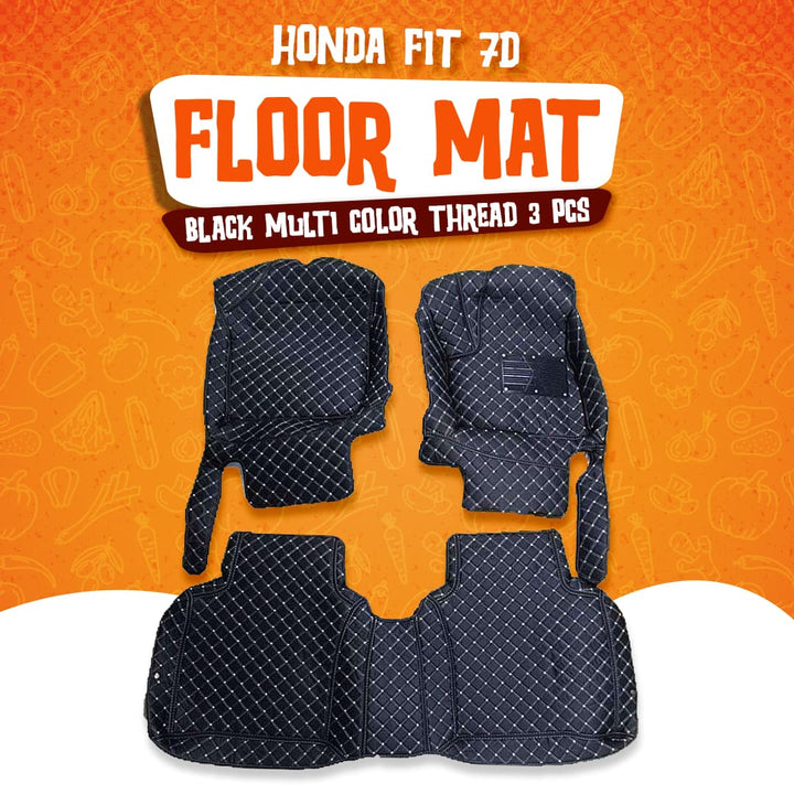 Honda Fit 7D Floor Mats - Black - 3 Pcs Set - Model 2013-2018
