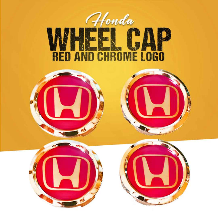 The Honda Logo Wheel Hub Covers Red And Chrome Sticker - 4 Pcs provides an excellent opportunity to transform your vehicle's wheels. Customers should place their order at Sehgal Motors for stylish wheel hub covers that enhance the elegance of their Honda.