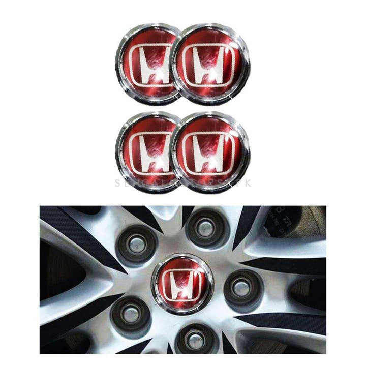 Honda Logo Wheel Hub Covers Red And Chrome Sticker - 4 Pcs