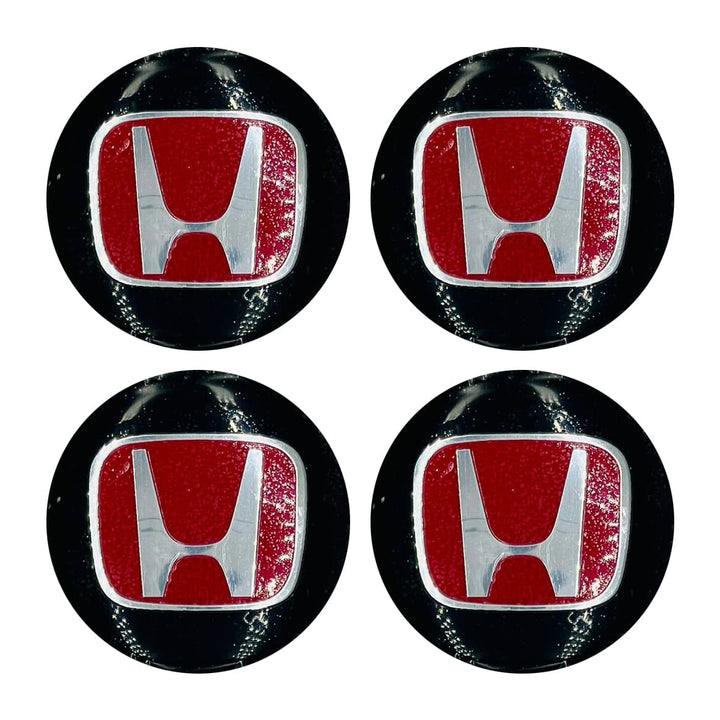 Honda Wheel Cap Logo Red And Black With Chrome Center Hub Badge Sticker - 4 Pcs