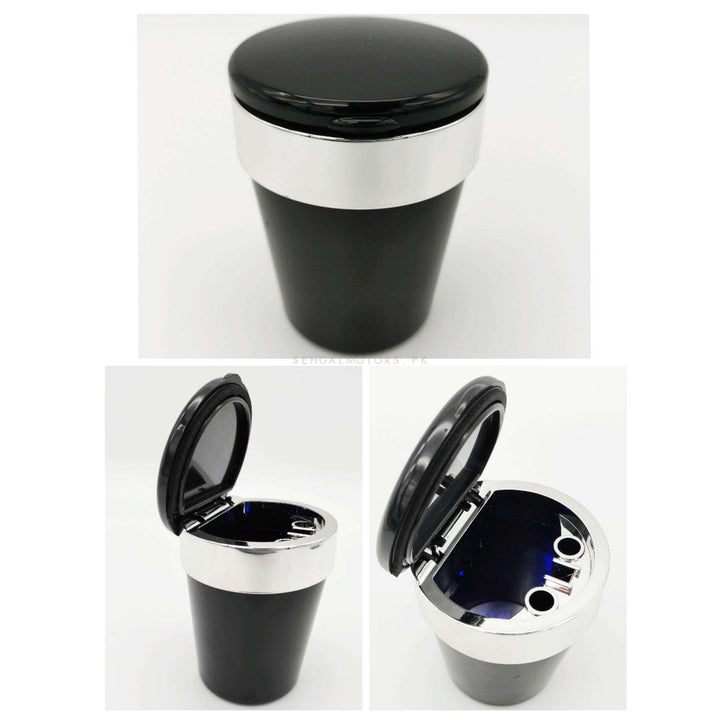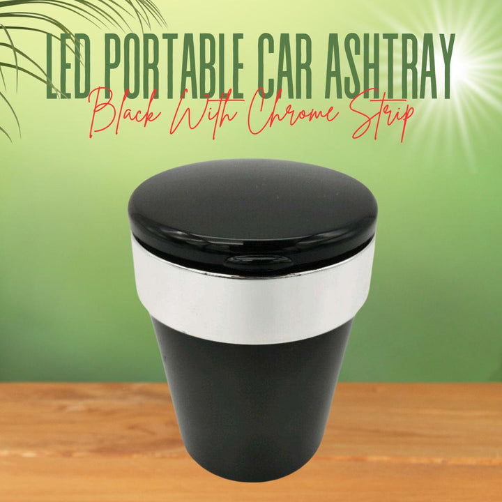 LED Portable Car Ashtray Black With Chrome Strip