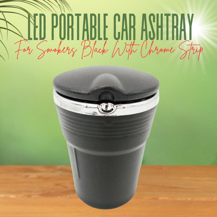LED Portable Car Ashtray For Smokers Black With Chrome Strip