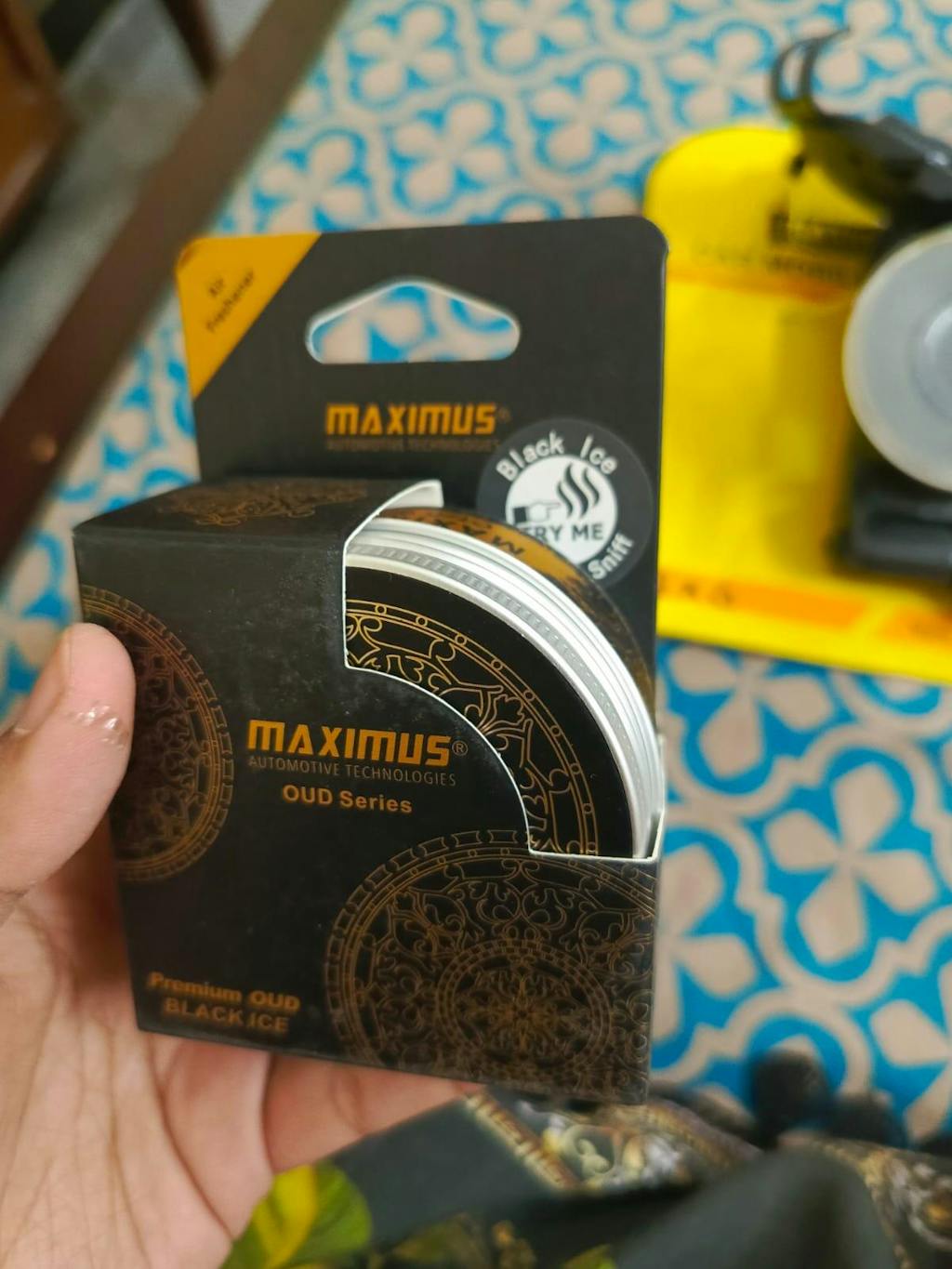 Maximus Premium Oud Series Wood Perfume: Black Ice-Sehgal Motors Make your Carโ€™s interior experience even better with the Maximus Premium Oud Series Wood Perfume-BlackIce. This luxury air freshener is for those who understand the notion of luxury and sophistication premium air freshener formulated with unique fragrances engineered to be superior last long, smell strong. The innovative wood design is a style that brings more style to your Car, and makes your Car full of fragrance. This is best suited for daily commutes and long drivesBlackIce takes care that your vehicle smells premium and inviting.