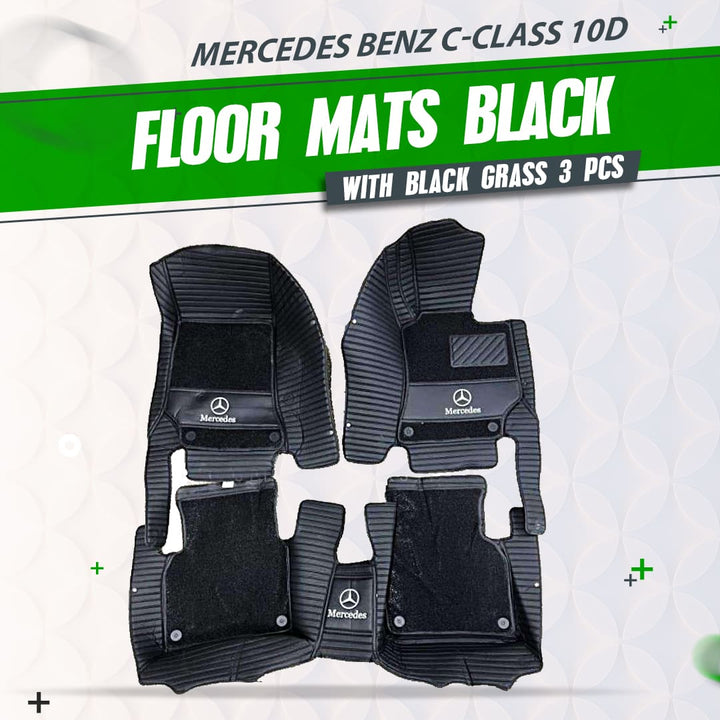 Mercedes Benz C-Class 10D Floor Mats Black With Black Grass 3 Pcs - Model 2014-2018