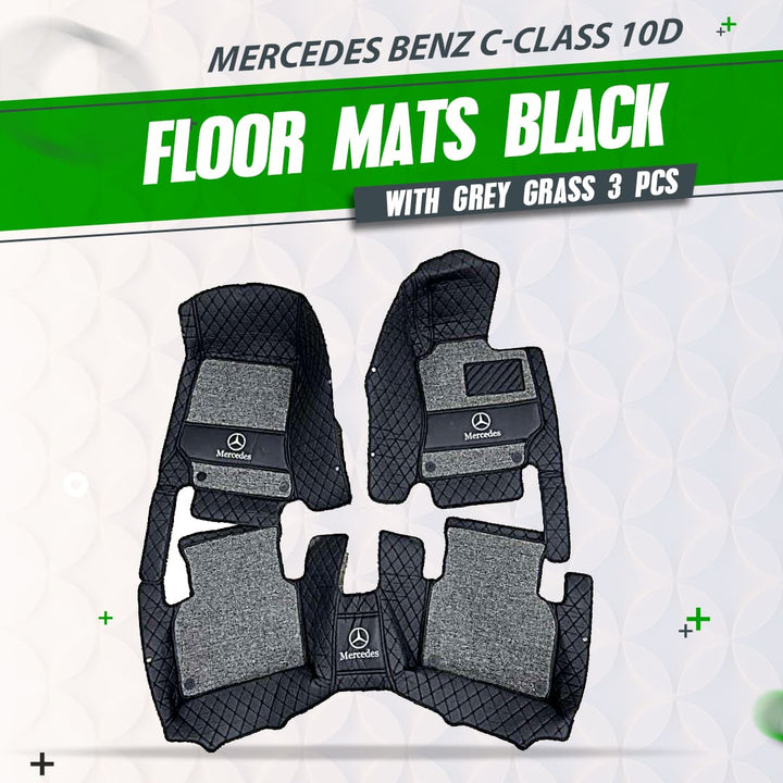 Mercedes Benz C-Class 10D Floor Mats Black With Grey Grass 3 Pcs - Model 2014-2018