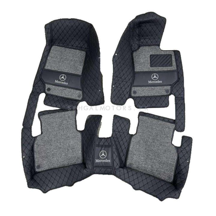 Mercedes Benz C-Class 10D Floor Mats - Mix Thread Black With Grey Grass - 3 Pcs Set - Model 2014-2018
