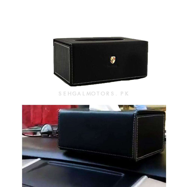 Porsche Leather Car Tissue Holder Case Box 9CM Black