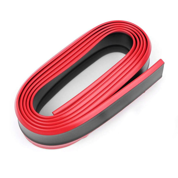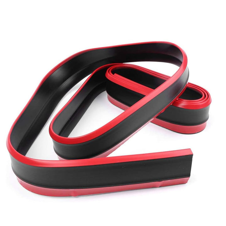 Rubber Lip Protector Black with Red Skirt - Bumper Splitter Protector Body Guard Skirt Cover Strap Lip