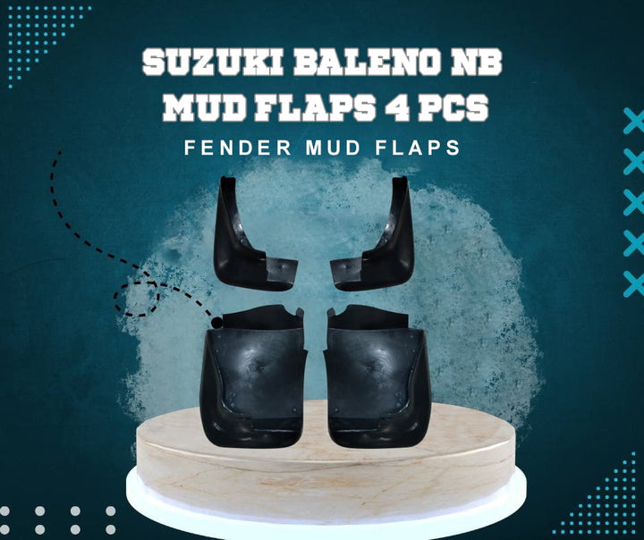 Suzuki Baleno  Mud Flaps 4 Pcs are designed to help protect the surface of your vehicle from water and material thrown up by the wheel. These premium mud flaps have been designed to fit the Suzuki Baleno perfectly, creating an excellent shield against the elements. Now available at SehgalMotors.pk, these protectors are more than just a means of defence – they give your car a cool look, too.