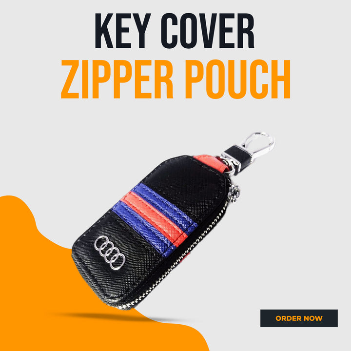 Keep your Audi Car keys with the Audi Zipper Jeans Key cover Pouch of the black one that has a smooth red and blue strip keychain. Made to be durable and convenient, this Key cover keeps your keys from scratches, dust and general wear and tear, in addition to giving your keys a classy appearance. Ideal to be used by Audi owners who take both functionality and beauty into consideration.