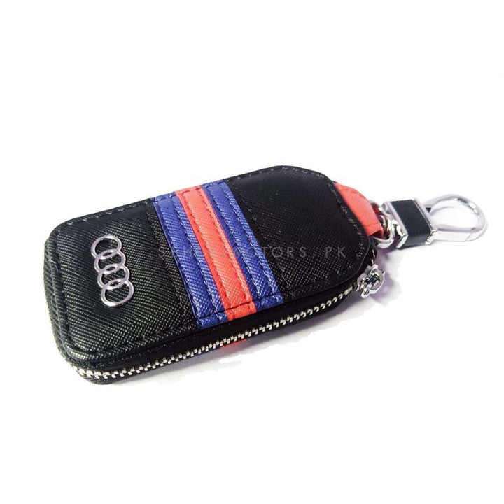 Audi Zipper Jeans Key Cover Pouch Black With Red Blue Strip Keychain