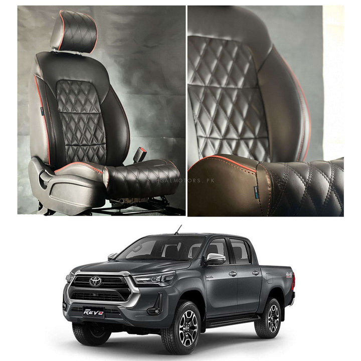 Toyota Hilux Revo/Rocco Diamond Cut Black Red Seat Covers