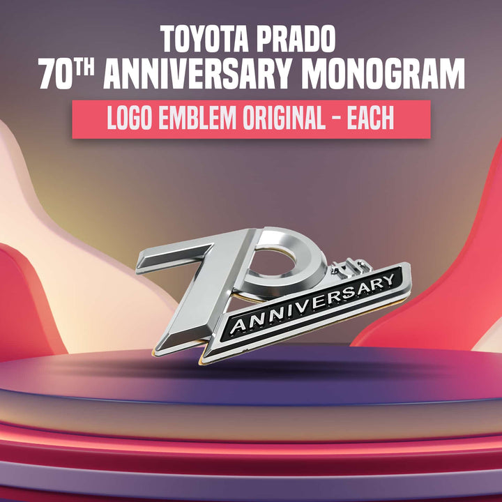 Celebrate greatness with the Toyota Prado 70th Anniversary Monogram Logo OEM Emblem. This premium quality emblem is a symbol of  performance. Designed for Toyota Prado owners who appreciate the genuine article, this emblem is designed to sustain your SUV's appearance and its heritage!