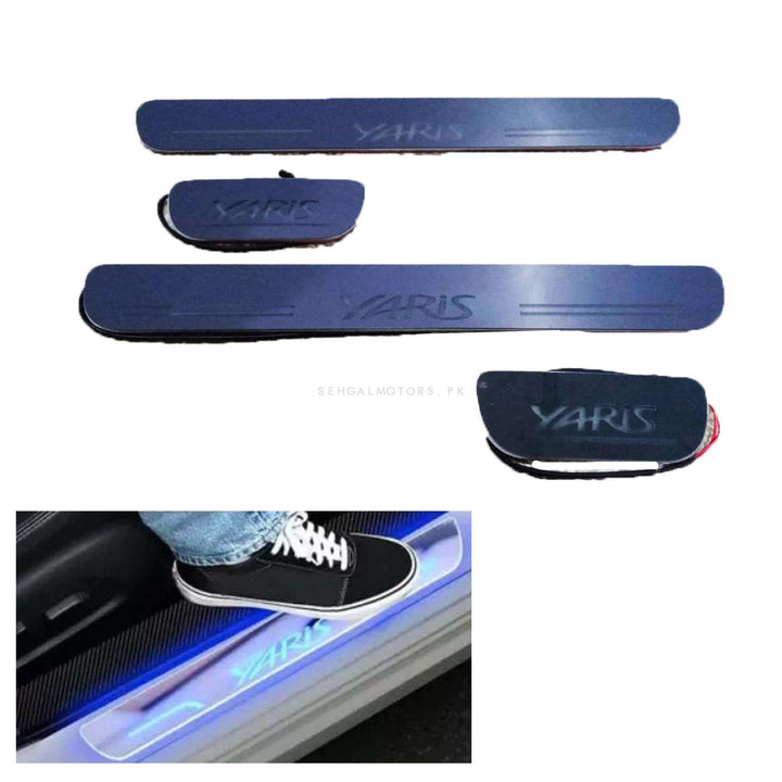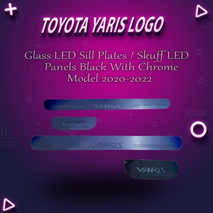 Toyota Yaris Glass LED Sill Plates / Skuff LED Panels Black With Chrome - Model 2020-2022